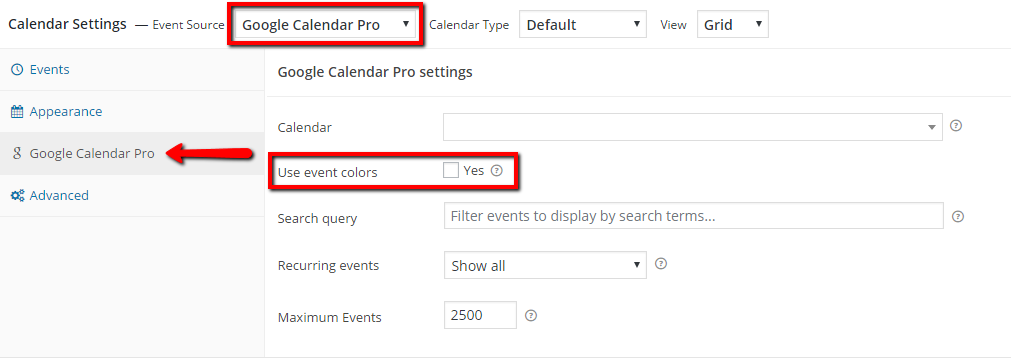 When you tick this option, depending on the calendar type you are using, the event colors from Google will be displayed along the events displayed with Simple Calendar. If no specific color is used in Google for an event, the default calendar color will be used.