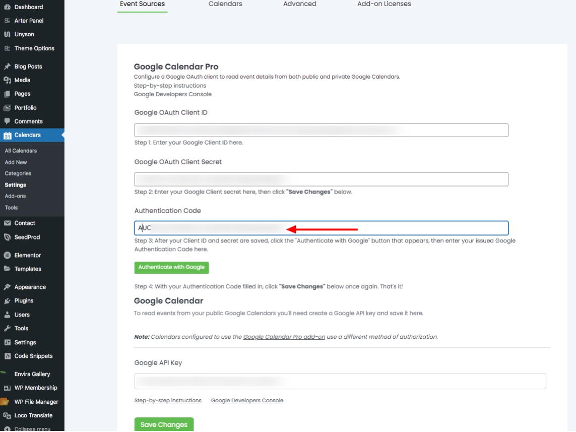 5. Click on the “Authenticate with Google” button to re-authenticate once again