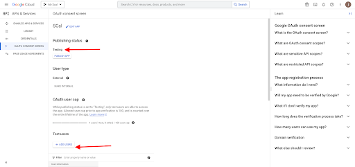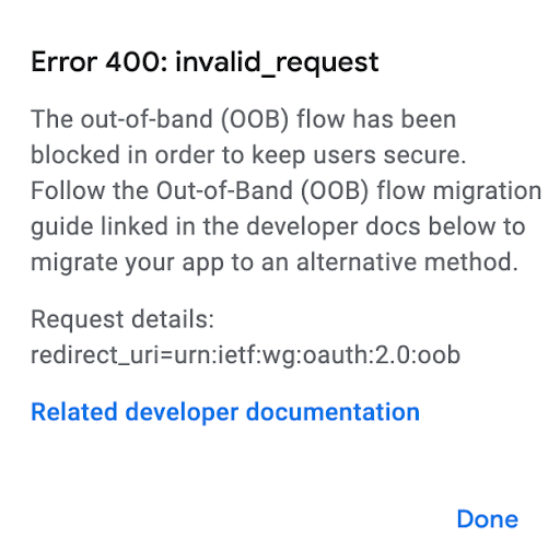 In order to resolve this error, you will need to set your application to “Testing” and add the account that you are using to authorize as a Test User within your Google Cloud project. Below is a screenshot on this: