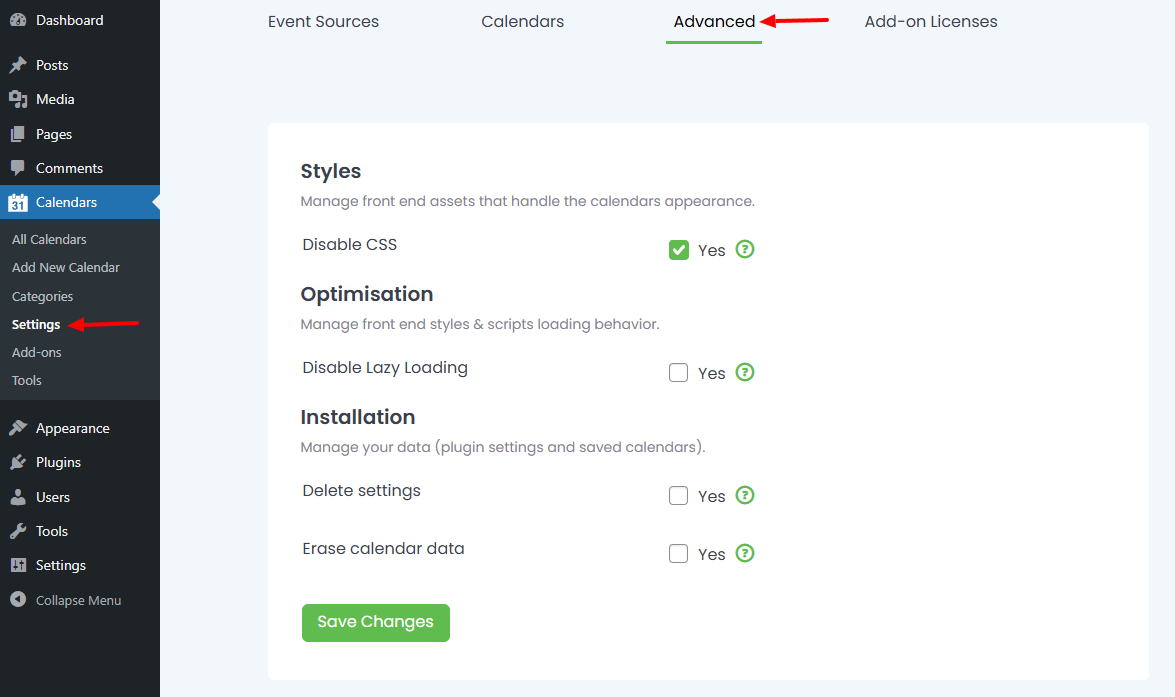 Once this option is enabled, the necessary scripts and styles will be loaded across all pages, ensuring the calendar displays correctly regardless of the theme or page builder used.